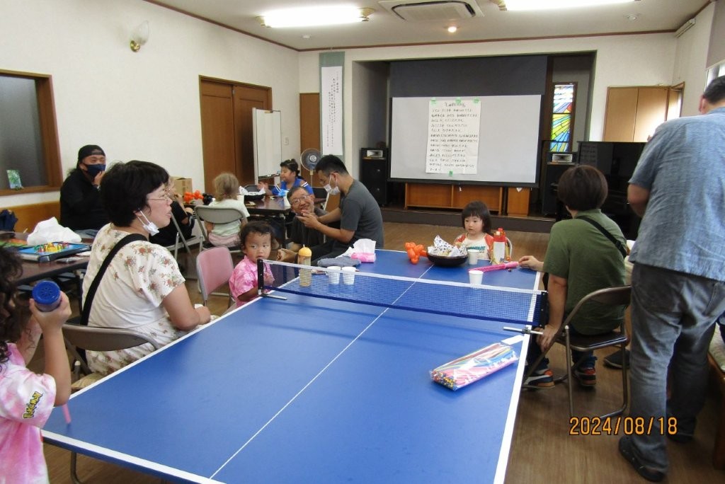 毎年8下旬に、子どもと大人が一緒に、讃美、ゲーム、遊び、工作、おやつ、夕食などで楽しい時を過ごして夏休みの思い出作りをします。参加費無料。興味のある方はメールかお電話をください。